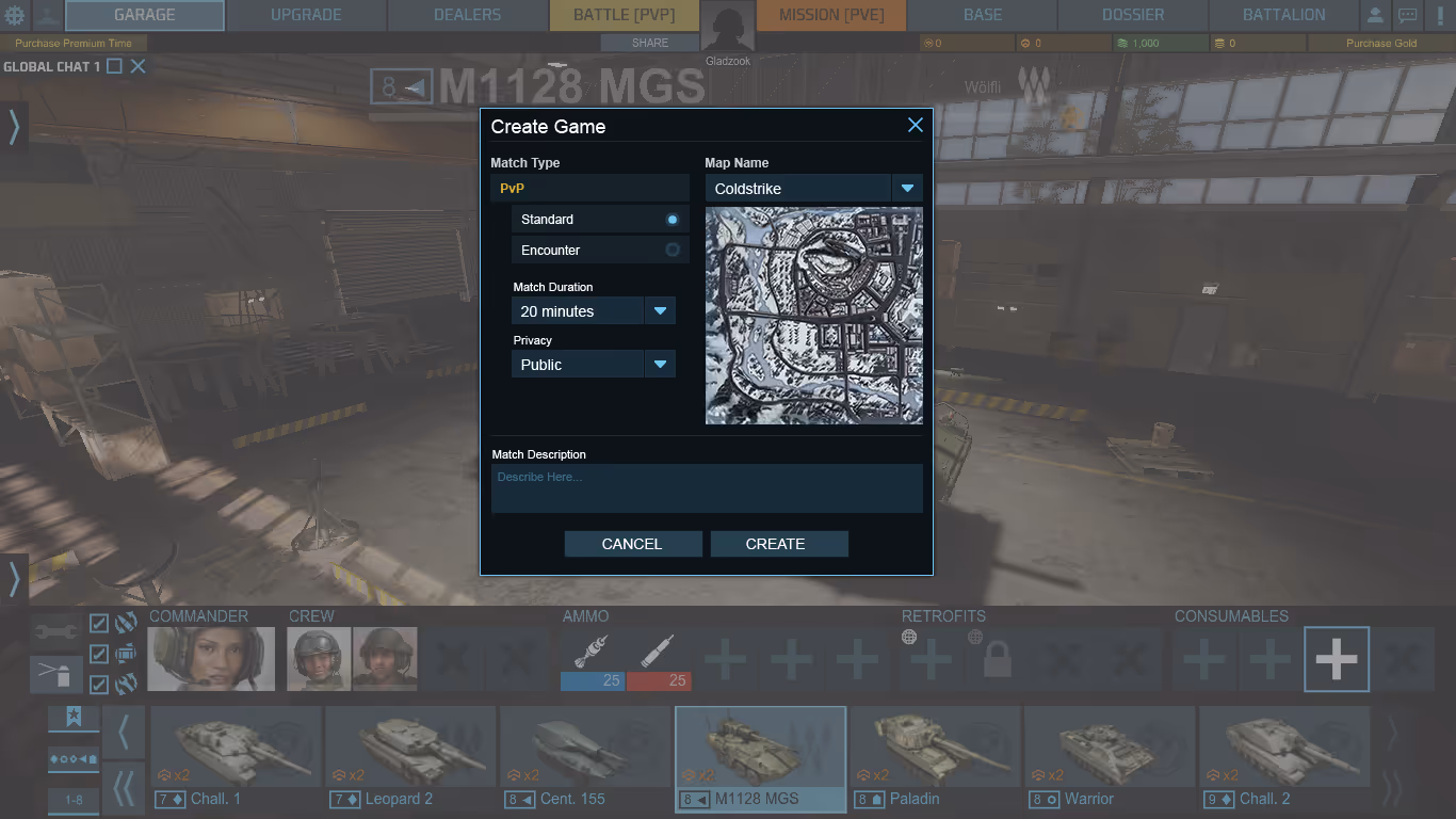 As a match-based combat game, this UI was intended to help players quickly set up and customize new game sessions. A chat-enabled lobby allowed users to give input on the game mode settings. Finally, a server list to show all the available matches.