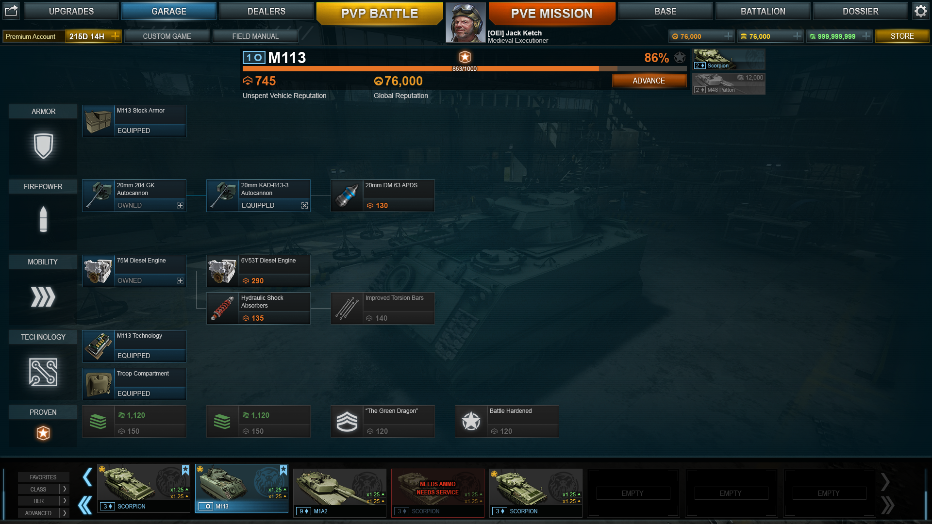 Armored Warfare is a F2P wargame in the format popularized by World of Tanks. With a team of seasoned Scaleform engineers on staff, most of my responsibilities on this project were related to visuals; UX and UI design, 3D modelling and iconography.