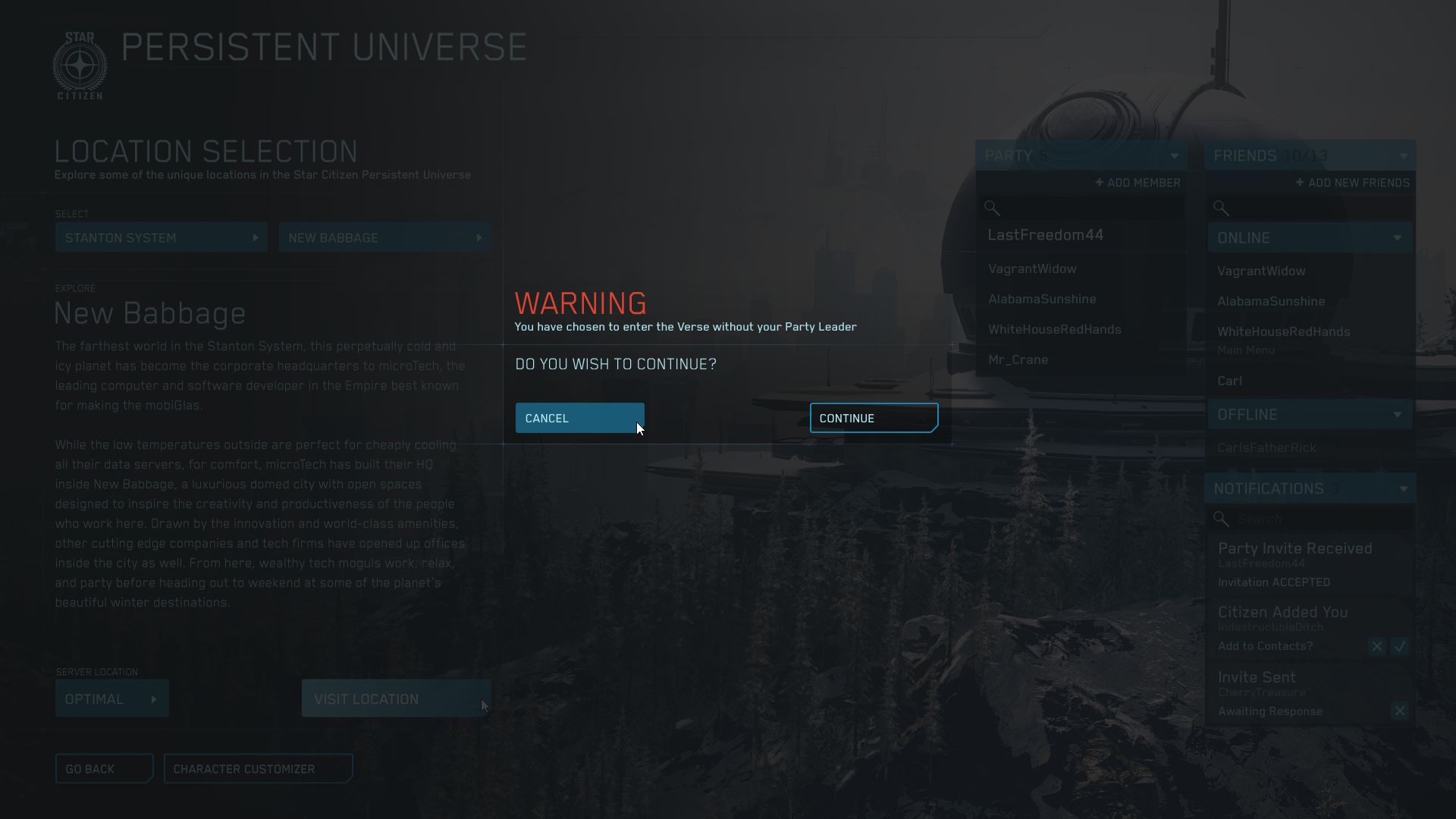 The player's first interaction with the product. I want to project a sense of scale to match the size of the game, so lots of negative space was used, letting the game visuals do all of the talking. On this screen you can manage your social lists, and launch your party into different parts of the universe.