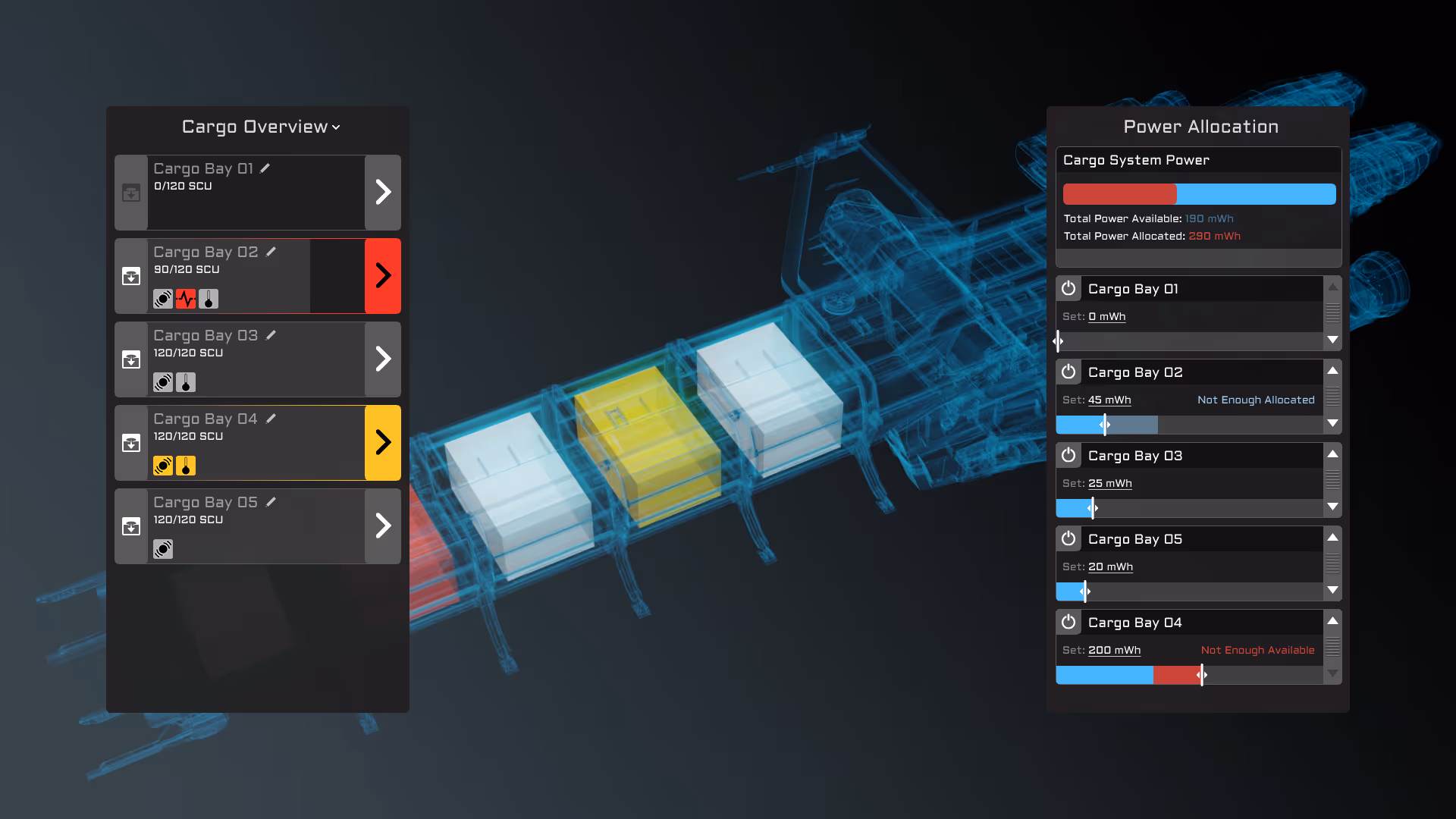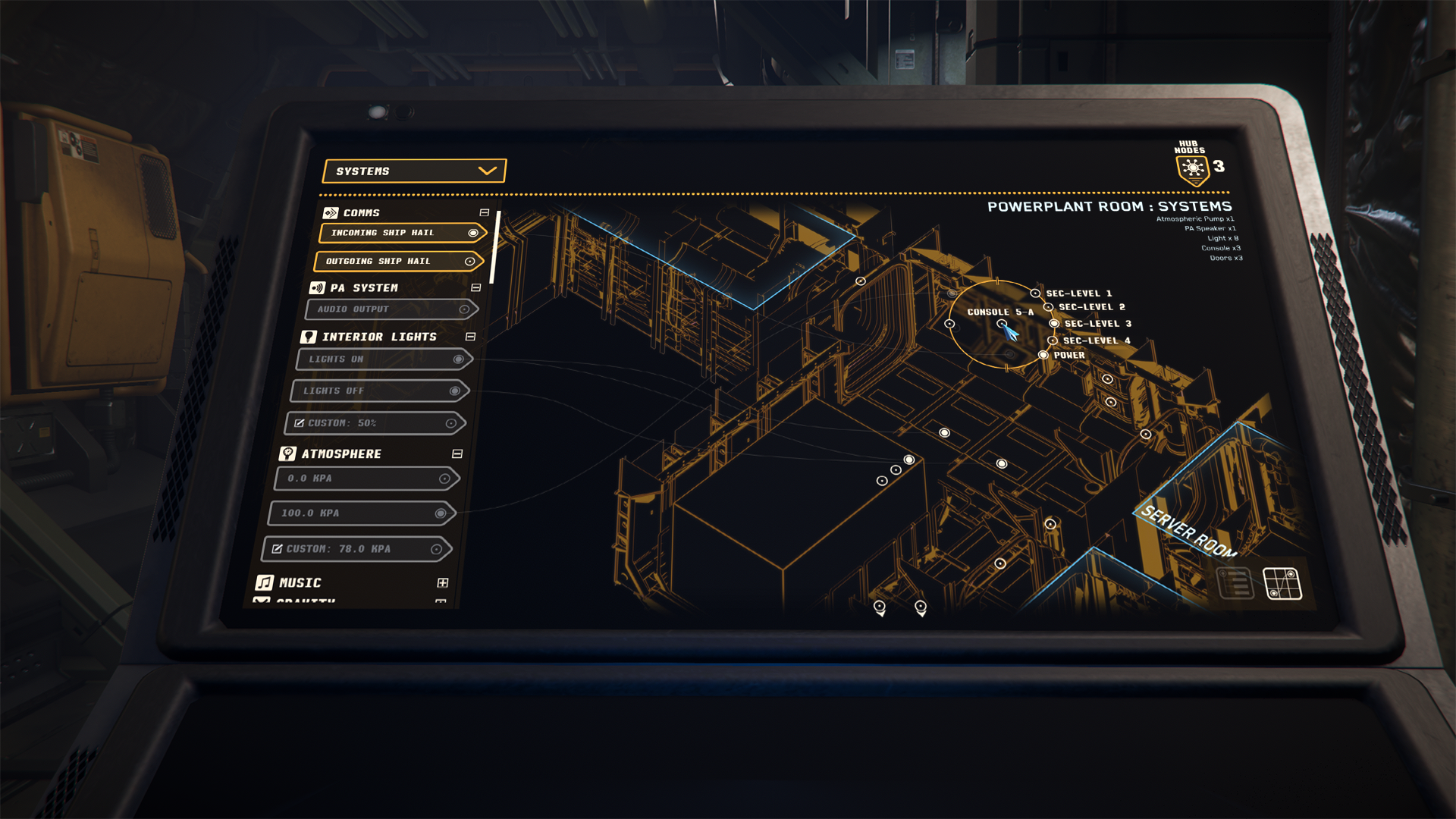 While some systems were exposed in the cockpit, there had never been any centralized UI to oversee and manage all the systems available on your ship. This was an exploration into a solution that was flexible enough to manage simple systems like lighting, up to complex systems like internal security permissions.