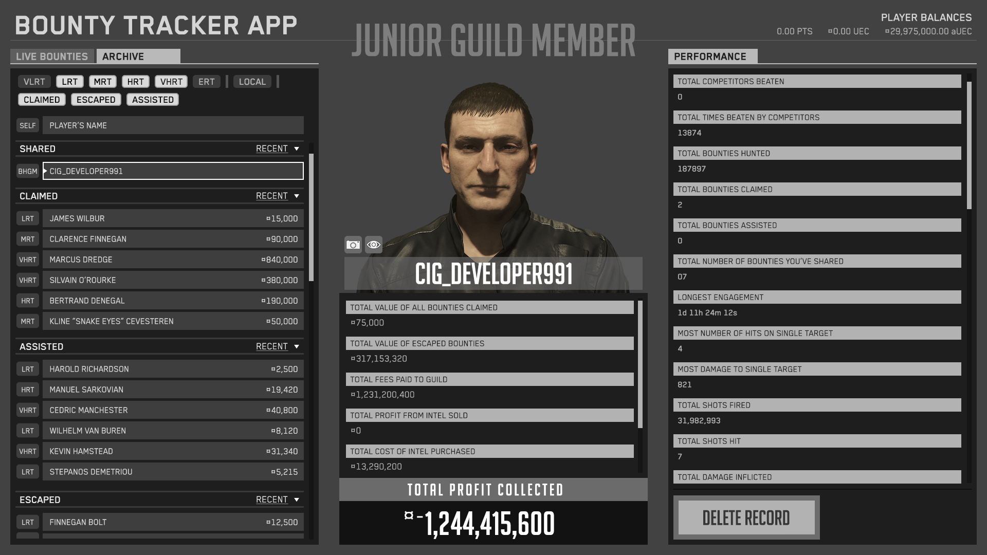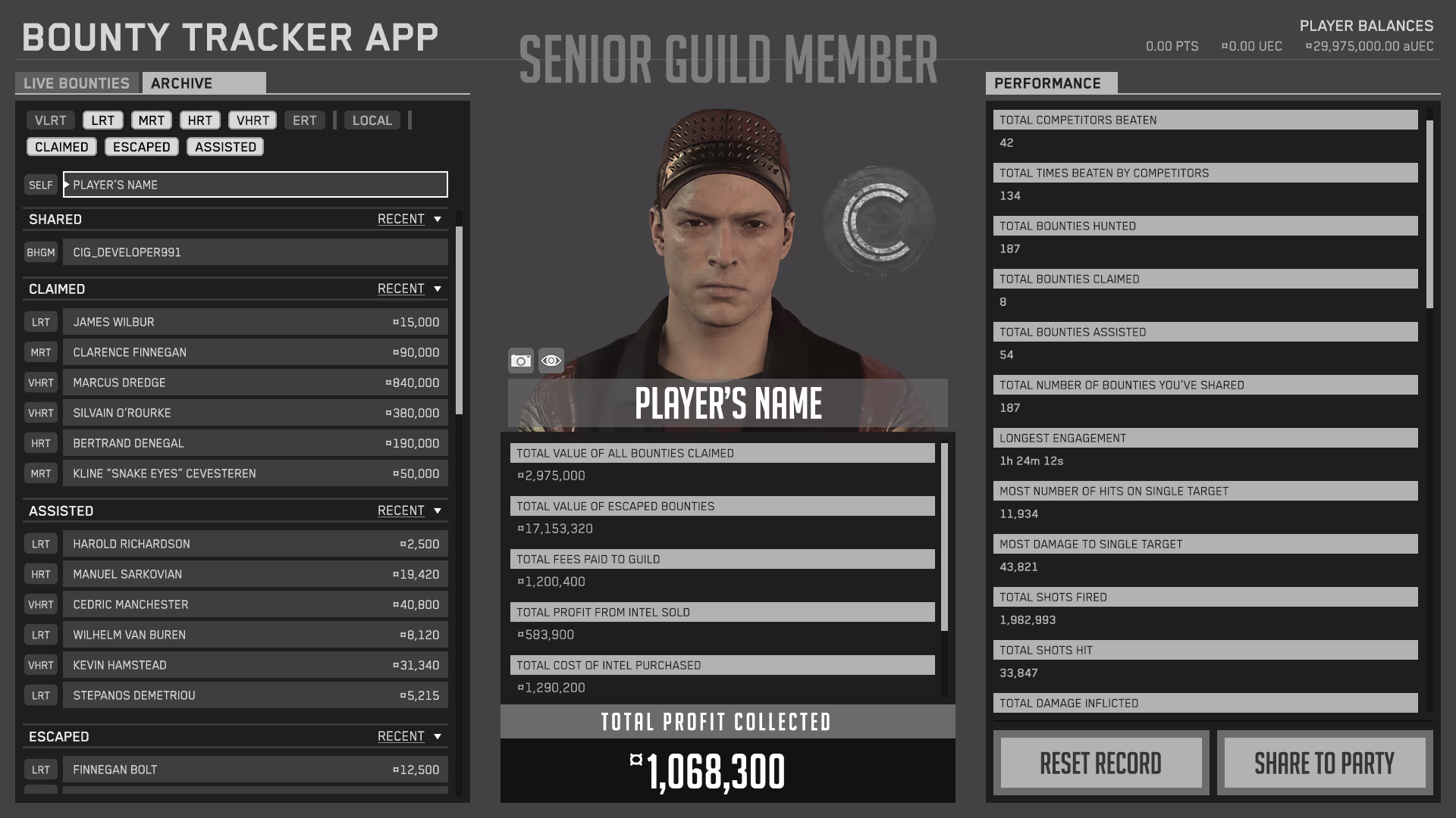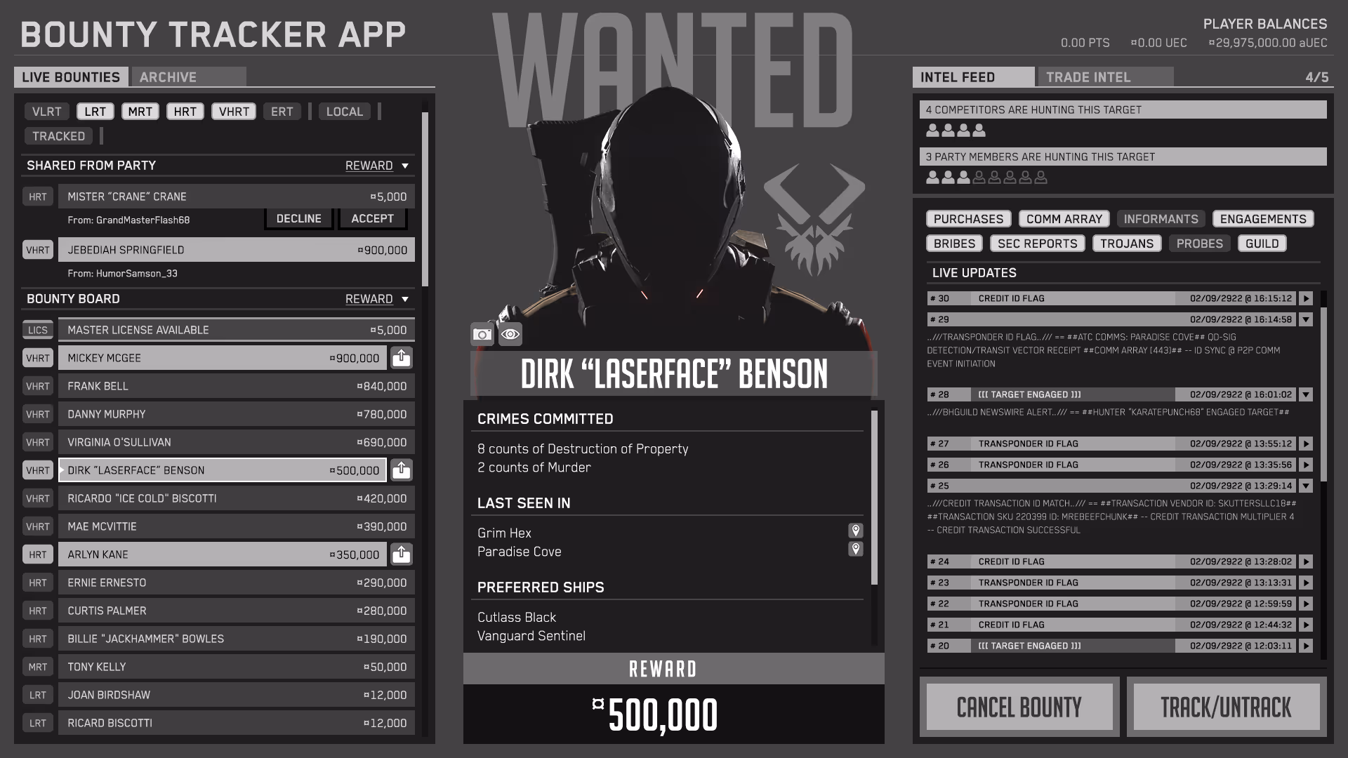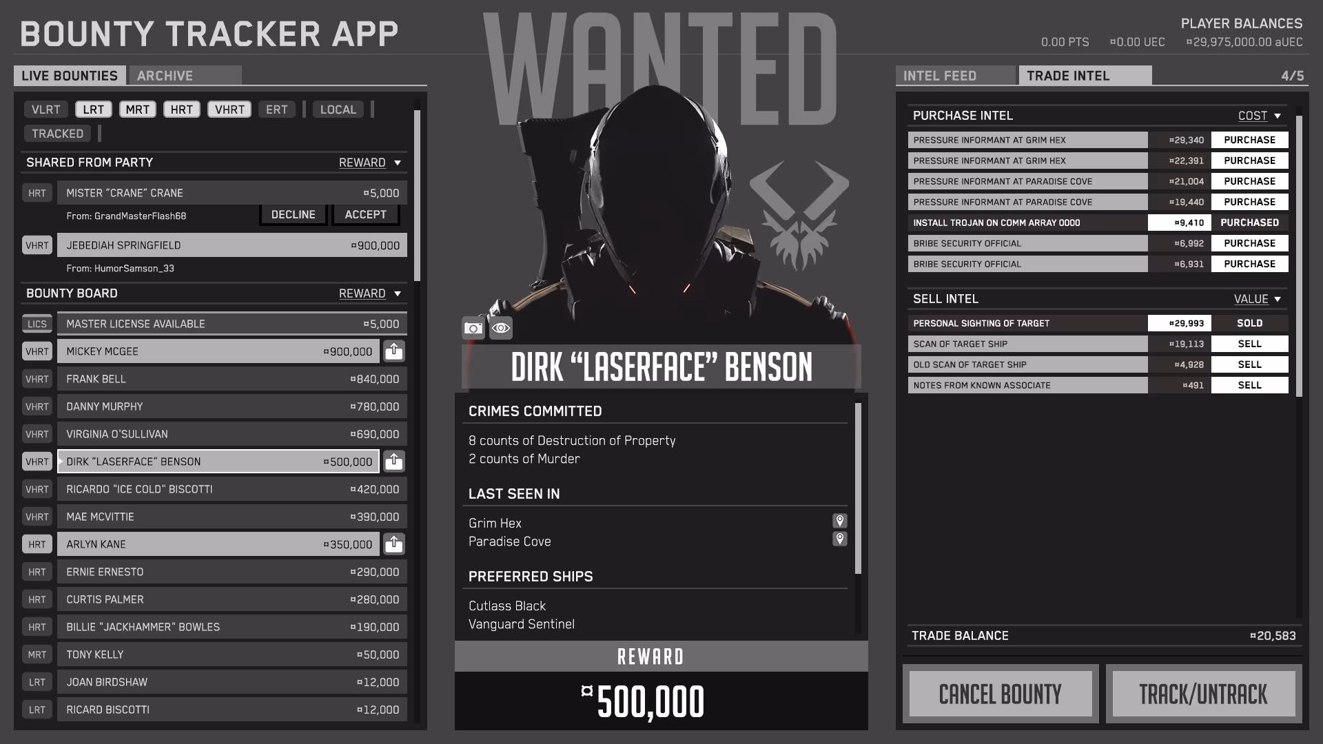 Bounty hunting has been very popular in Star Citizen, and had generated a lot of feedback requesting an experience for bounty hunters more robust than simply flying to the target's waypoint and killing them. I worked closely with a talented systems designer to figure out a way to bring the feeling of tracking evasive prey through the UX and UI.