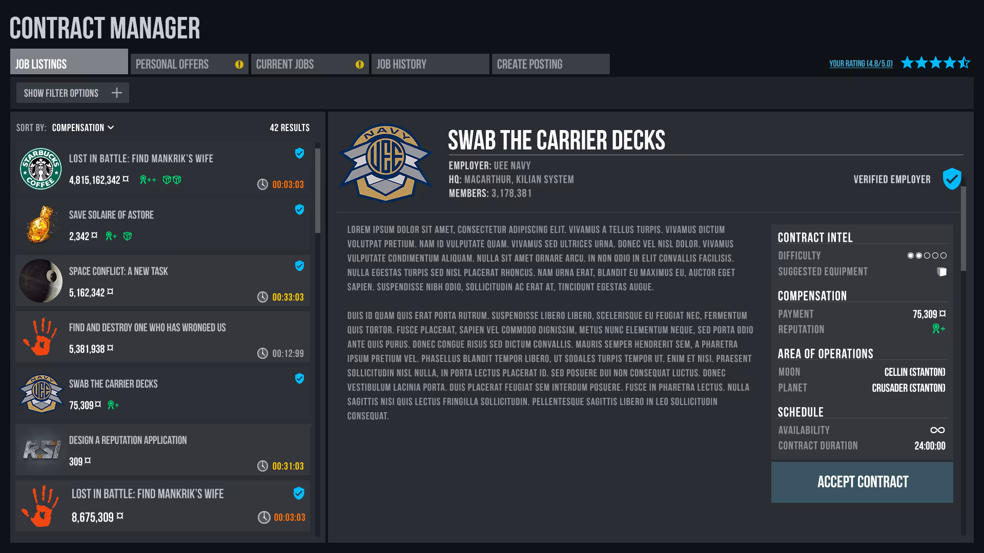 As more content was added to the missions system, it became clear that a more extensive solution was required for browsing, searching and filtering through posted missions.