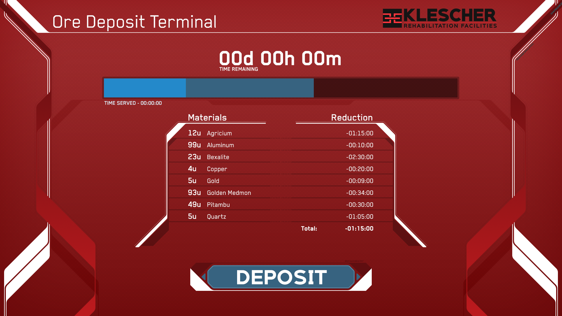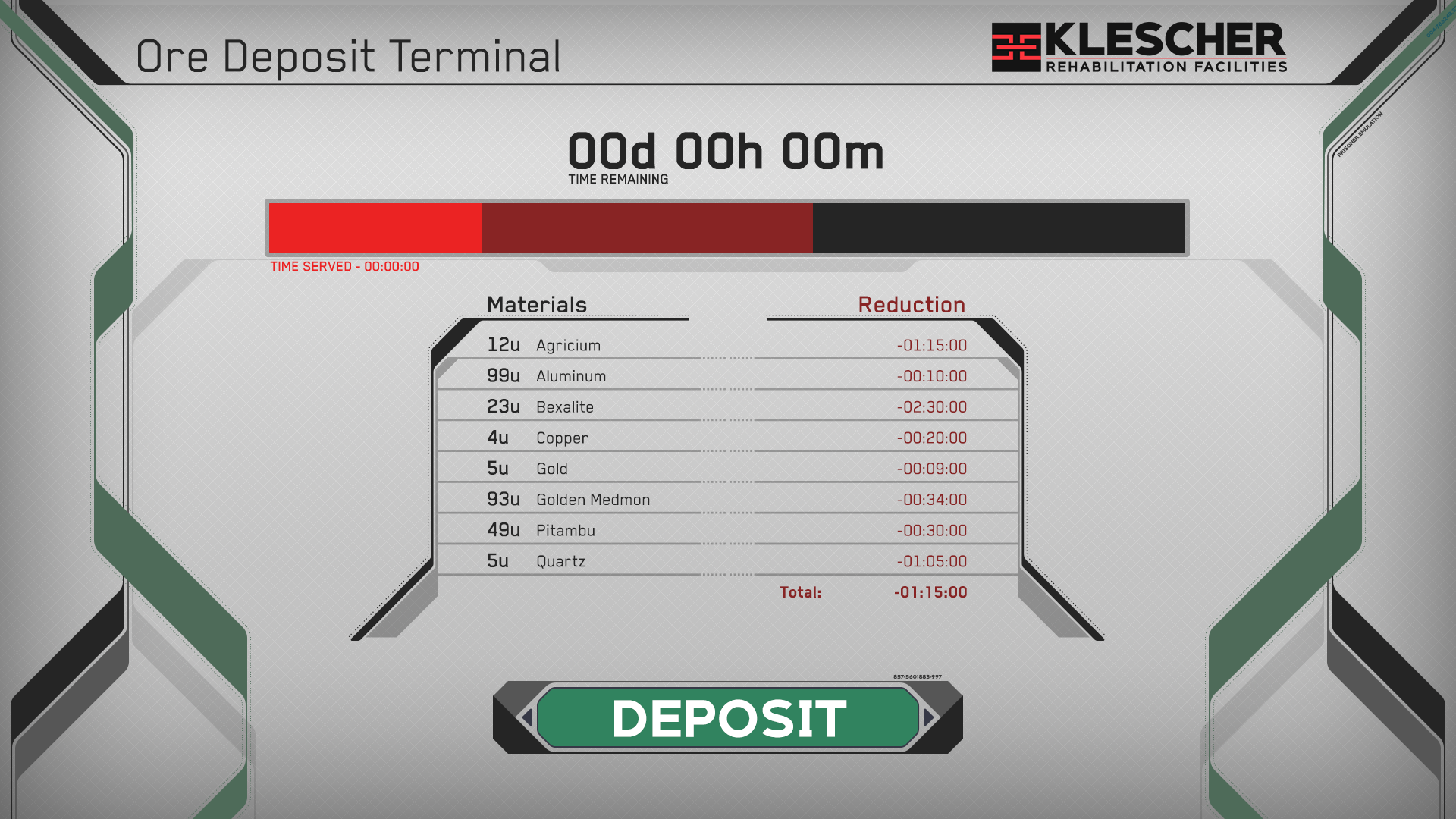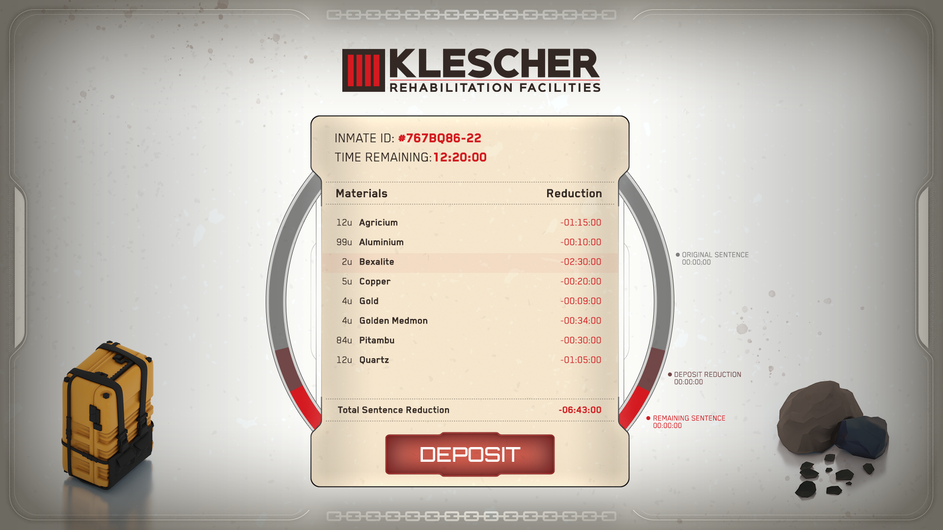 It's a rite of passage to accidentally find yourself with a ten hour prison sentence at Klescher. This was an exploration of what a sickeningly upbeat correctional facility corporation might have as their inmate interface for managing their mining excursions.